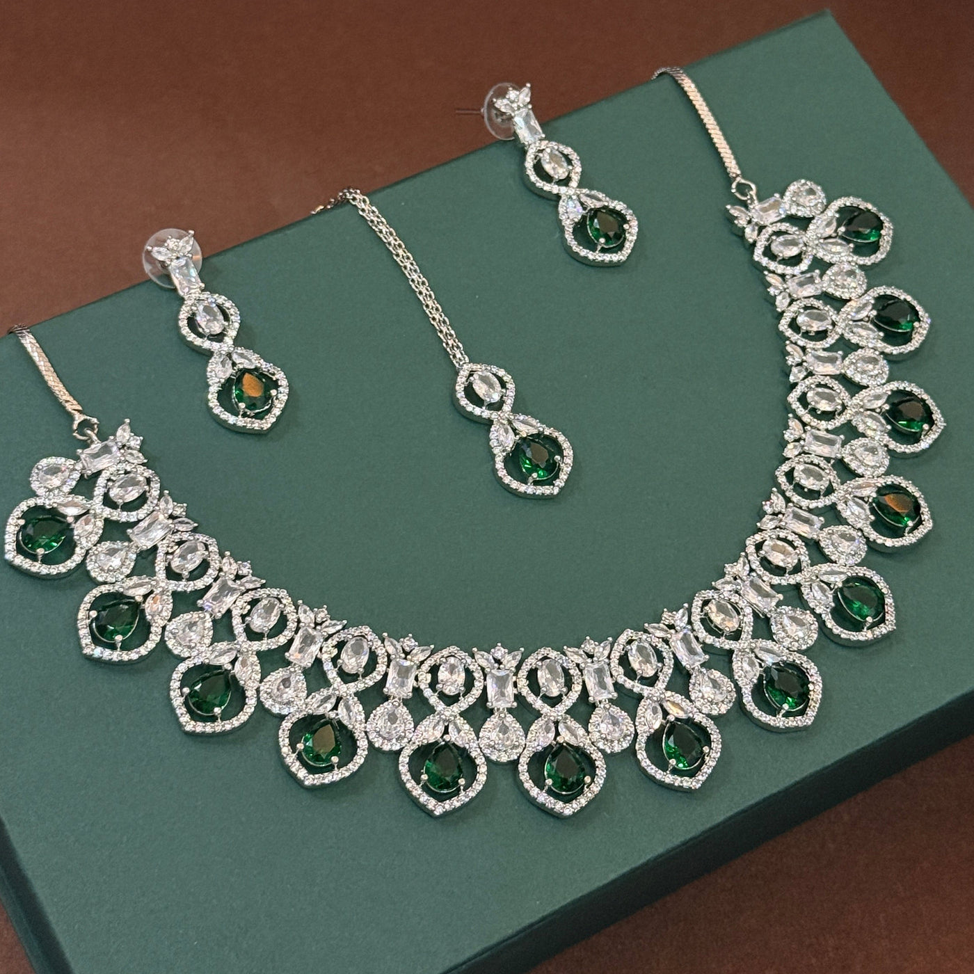 Elegant Green Crystal Drop Necklace Set
