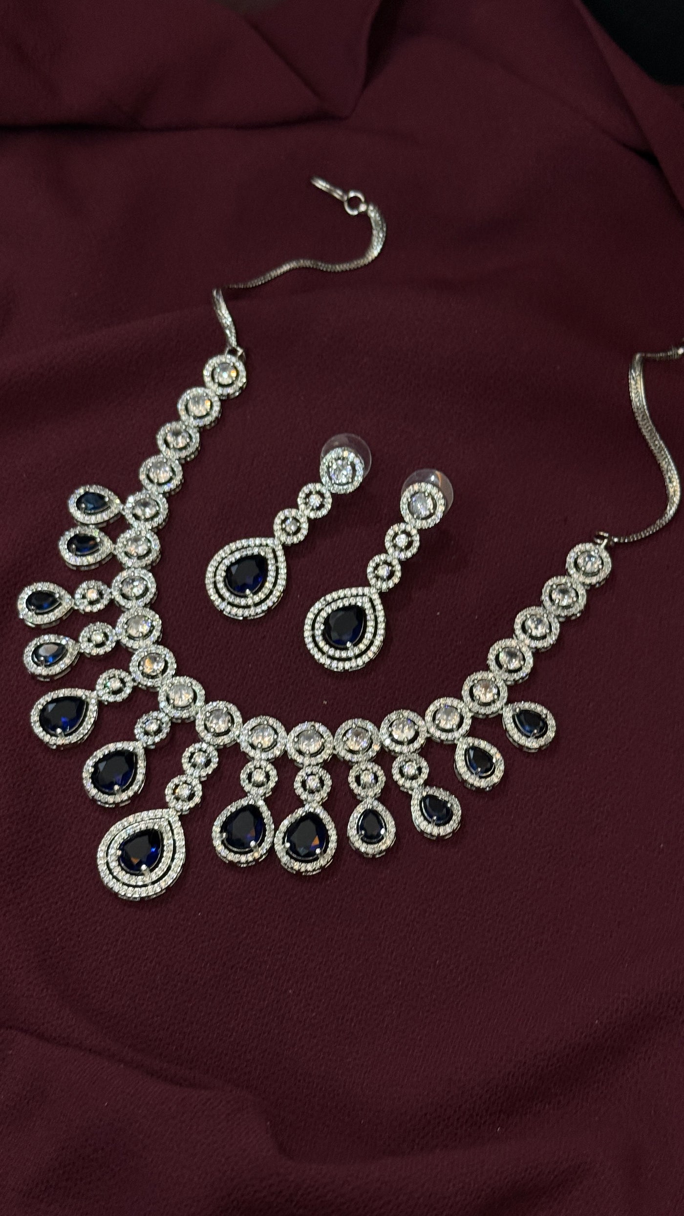 Make a statement of timeless elegance with this Premium Blue Stone Designer Necklace Set, designed for women who love refined luxury.